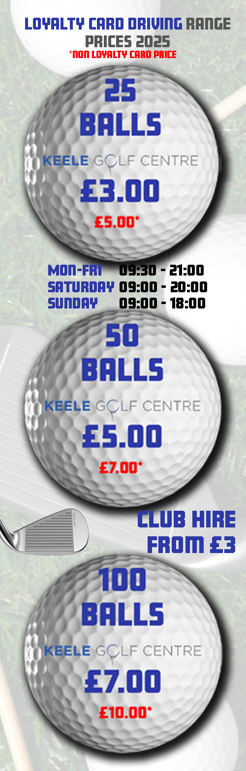 Visiting often? Apply for a range discount card from the Keele Golf Centre (minimum top up £50) to save on each visit.